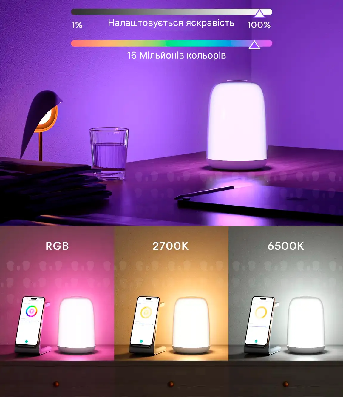 Мінімальна яскравість вночі, або яскраве світло для книжки. Зробіть групу з двох світильників для одночасного керування та налаштуйте світло саме так, як потрібно вам.